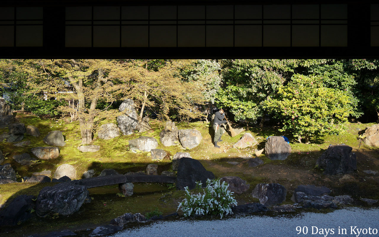 Day 2 – My colleague cleaning the moss in the northern garden of Entoku-in, which is a sub-temple of Kodai-ji (高台寺).