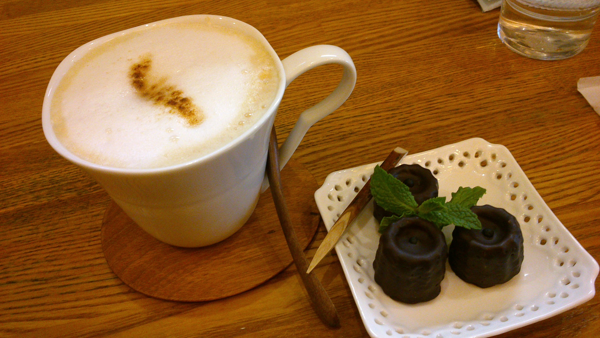 It is pretty cold today and I am warming up with a coffee and canele at Cafe du Mon next to the temple.
